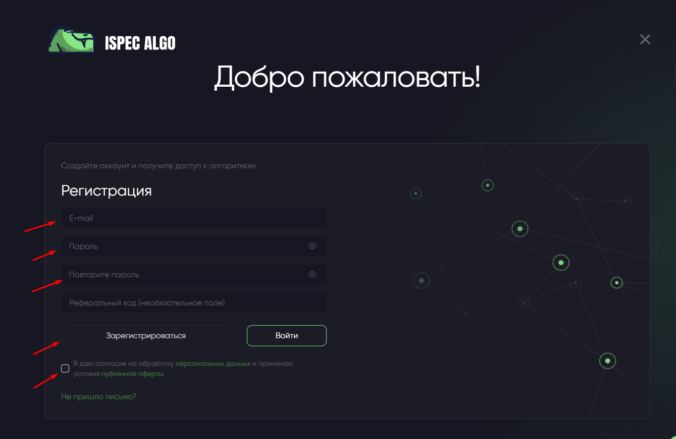 Далее просто заполните все поля и нажмите на кнопку **Зарегистрироваться**