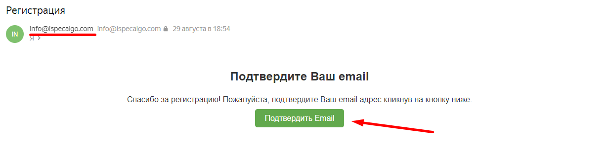 После этого вам на почту придет письмо, нажмите на кнопку **Подтвердить Email**&#x20;