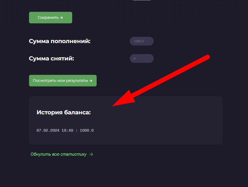 **3**.**Укажите ваш начальный баланс**, он должен соответствовать реальному балансу на вашем счету, если вы будите торговать на нескольких биржах, то укажите суммарный баланс с двух бирж, после ввода баланса нажмите на кнопку **сохранить**